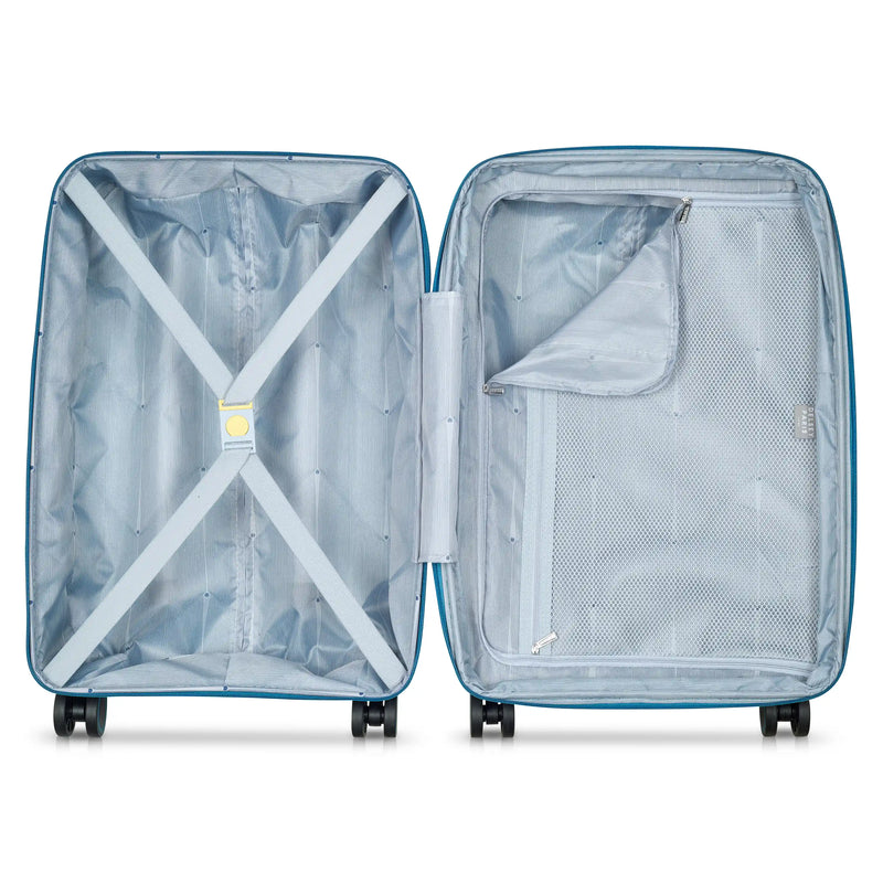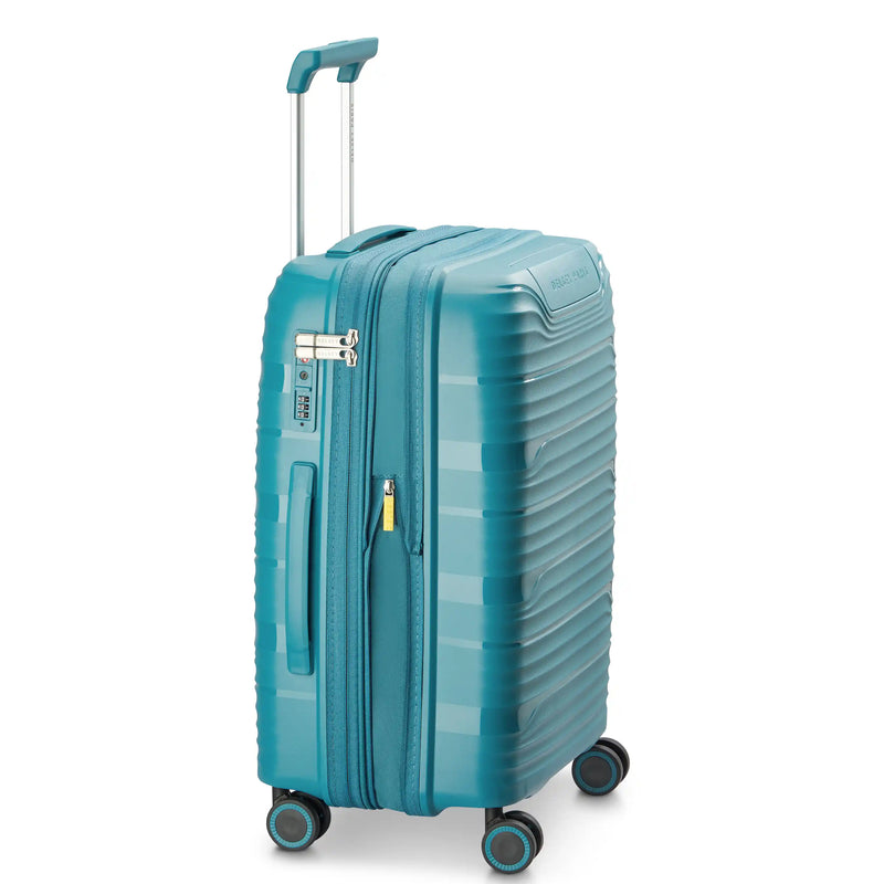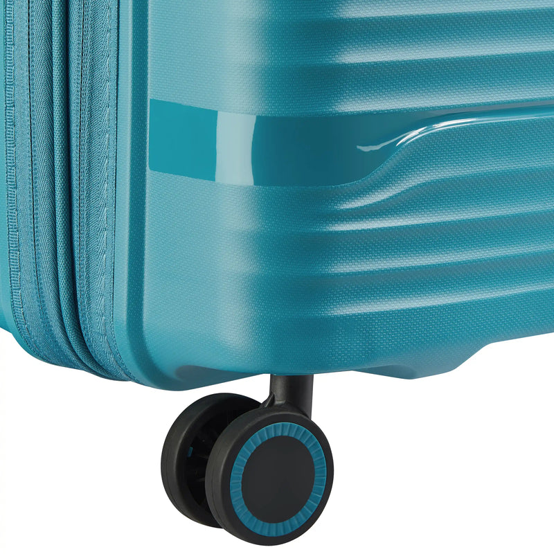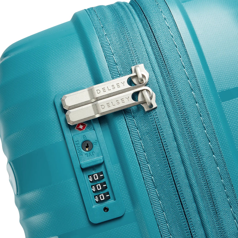 The DELSEY PARIS Dune Carry-On Plus is an ultra-lightweight 20-inch spinner crafted from durable polypropylene. Featuring smooth-rolling double-spinner wheels, a TSA-accepted lock, and expandable interior with organized compartments, it's designed for hassle-free travel. The adjustable trolley handle and retractable top handle provide ergonomic comfort, while the sleek Dune finish adds style to every journey. Backed by a 2-Year Limited Worldwide Warranty.